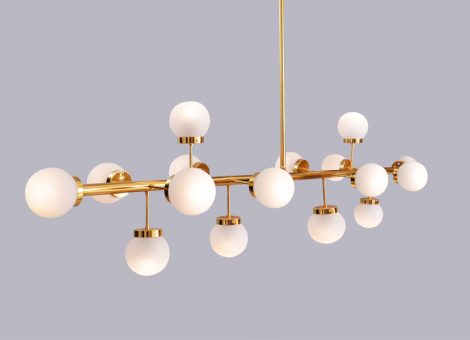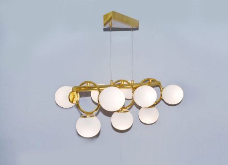 مستوحاه من عائله Mrvila لدى لوتشيكو فاللون الذهبى مع كرات الاناره الزجاجيه تضيف لمسه جمال رائعه لغرفه الاستقبال والمعيشه مصنوعه من الحديد المطلى بماء الذهب الخالص لتعطى قيمه فنيه ديكوريه مميزه.