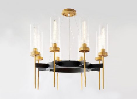 تصميم جديد ورائع ليعطى غرف الطعام شكل مميز جداً ، مصممه بدهانات الاسود والذهبى لتناسب الذوق العام مع اختيارات الاثاث والمفروشات لغرفه الطعام ، فهي رائعه جدا لغرف الطعام الكبيره حيث ان الجلوبات الزجاجيه الثمانيه عشر الموزعه بطول الوحده وتعطى لفته مميزه وفريد فى الشكل وايضا فى توزيع الاضاءه.